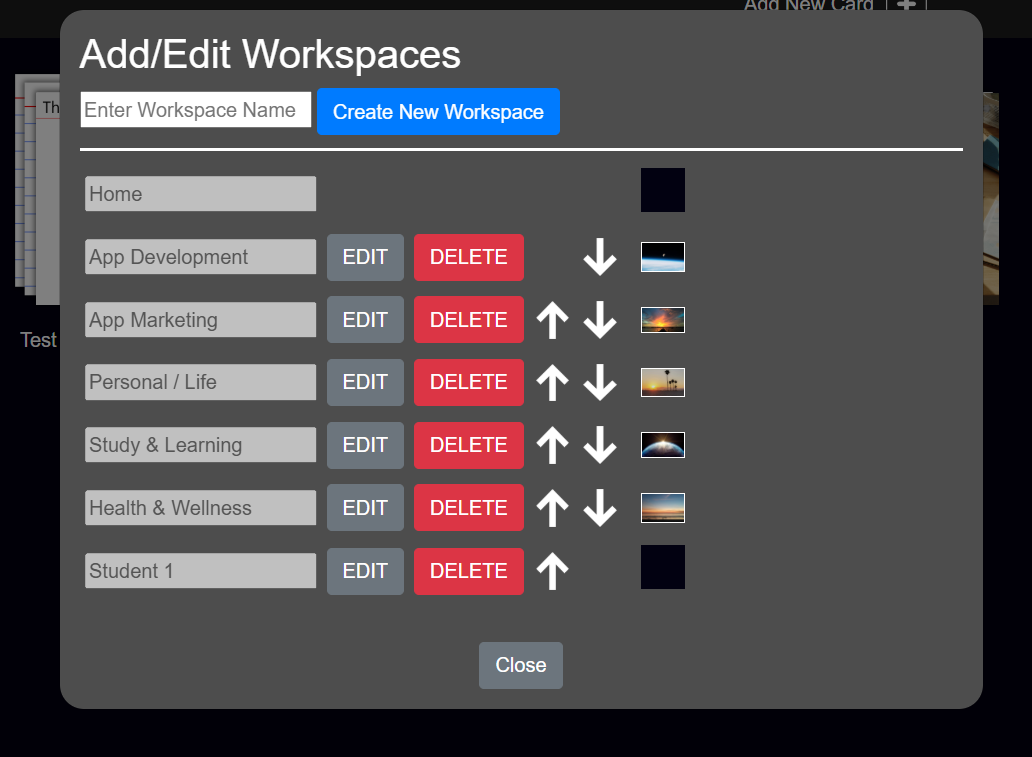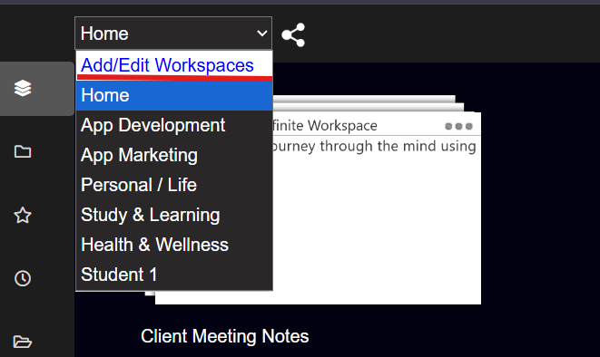 To delete a Workspace, open the Workspace edit menu and select 'Add/Edit Workspaces'